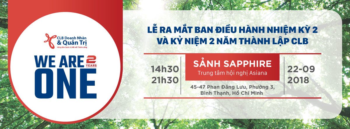 Trải qua gần 2 năm với rất nhiều hoạt động online và offline diễn ra trên toàn quốc, CLB Doanh Nhân và Quản Trị (tiền thân là CLB Quản Trị và Khởi Nghiệp) sẽ tổ chức sự kiện “LỄ RA MẮT BAN ĐIỀU HÀNH NHIỆM KỲ 2 VÀ KỶ NIỆM 02 NĂM THÀNH LẬP CLB” vào ngày 22/09 sắp tới.