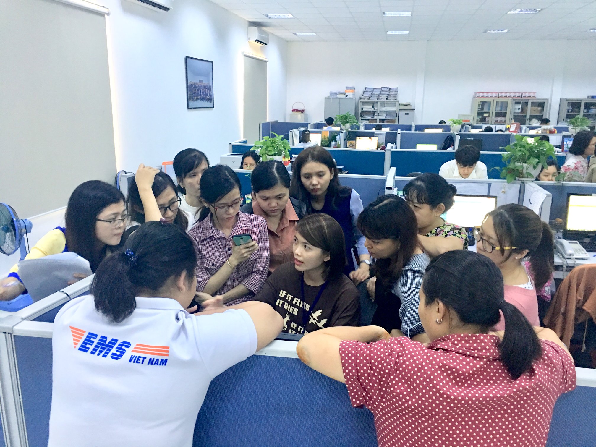 Số lượng nhân viên đông đảo tập trung tại phòng dịch vụ khách hàng, văn phòng EMS tại thành phố Hồ Chí Minh