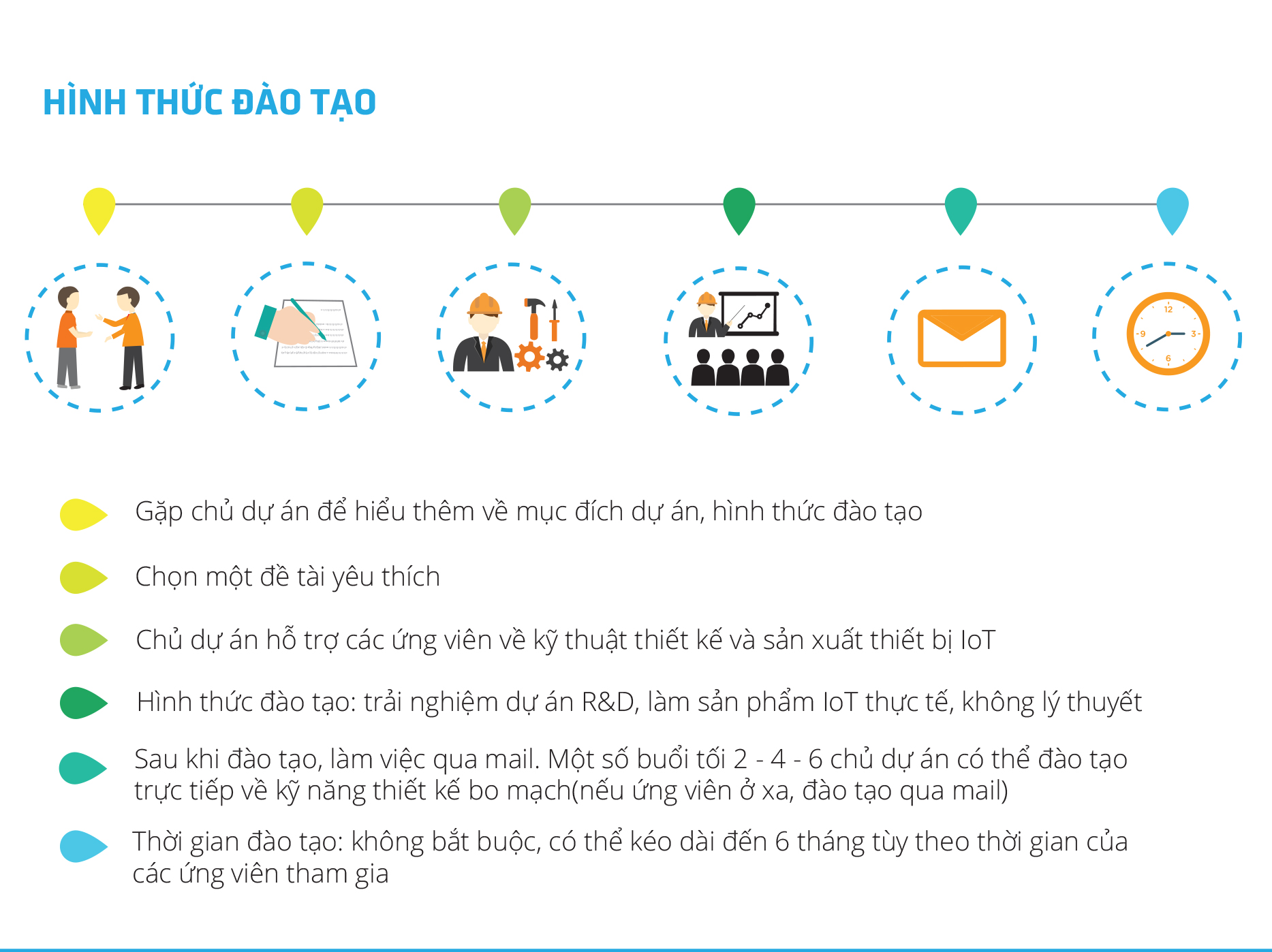 Như vậy, nếu có bất cứ nhu cầu tìm hiểu và học hỏi để tạo ra những sản phẩm có ích, hãy chọn cho mình một dự án IoT phù hợp, lập một nhóm những người bạn cùng chí hướng và bắt đầu tự mình thiết kế một thiết bị IoT đi nào! Với cơ hội học tập HOÀN TOÀN MIỄN PHÍ, biết đâu đây sẽ là môi trường giúp bạn hiện thực hoá những ý tưởng táo bạo của bản thân thì sao? Tất cả đều có thể nếu bạn đủ quyết tâm!