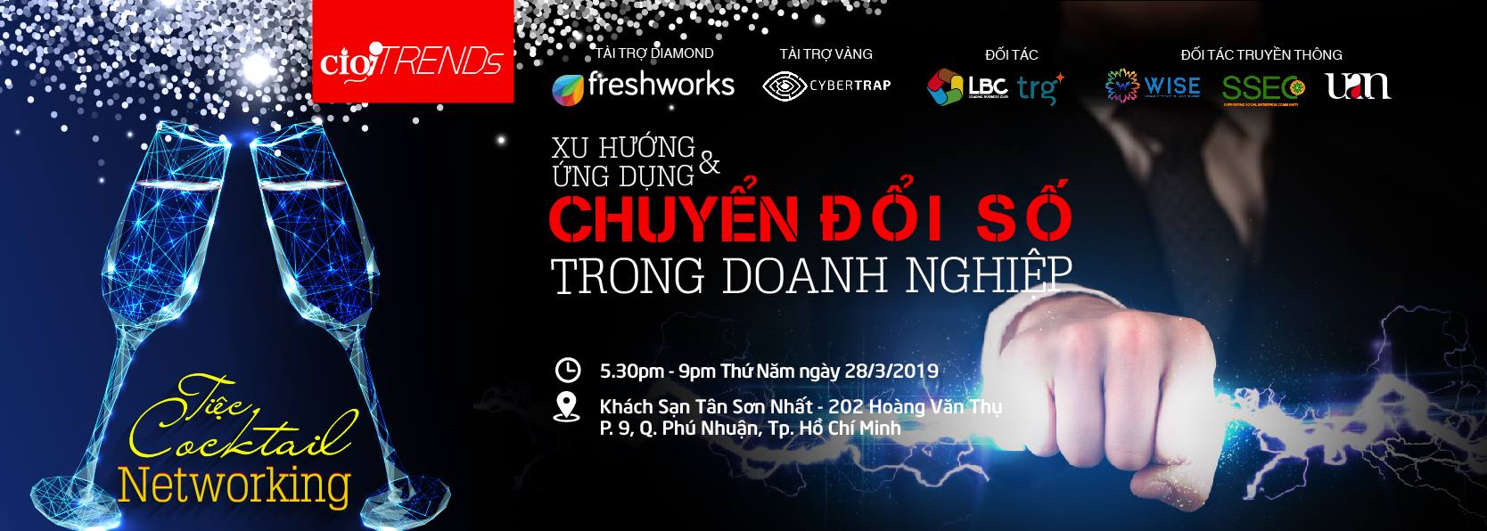 Vào lúc 17g30 – 21g00 ngày 28/3/2018 (thứ 5), tại khách sạn Tân Sơn Nhất, số 202 Hoàng Văn Thụ, phường 9, quận Phú Nhuận, cộng đồng CIO Vietnam tổ chức chương trình CIO Trends, với chủ đề: “Xu hướng và ứng dụng chuyển đổi số trong doanh nghiệp”. Chương trình với mục tiêu mang lại một bức tranh toàn cảnh về xu hướng và ứng dụng chuyển đổi số trong doanh nghiệp hiện nay.