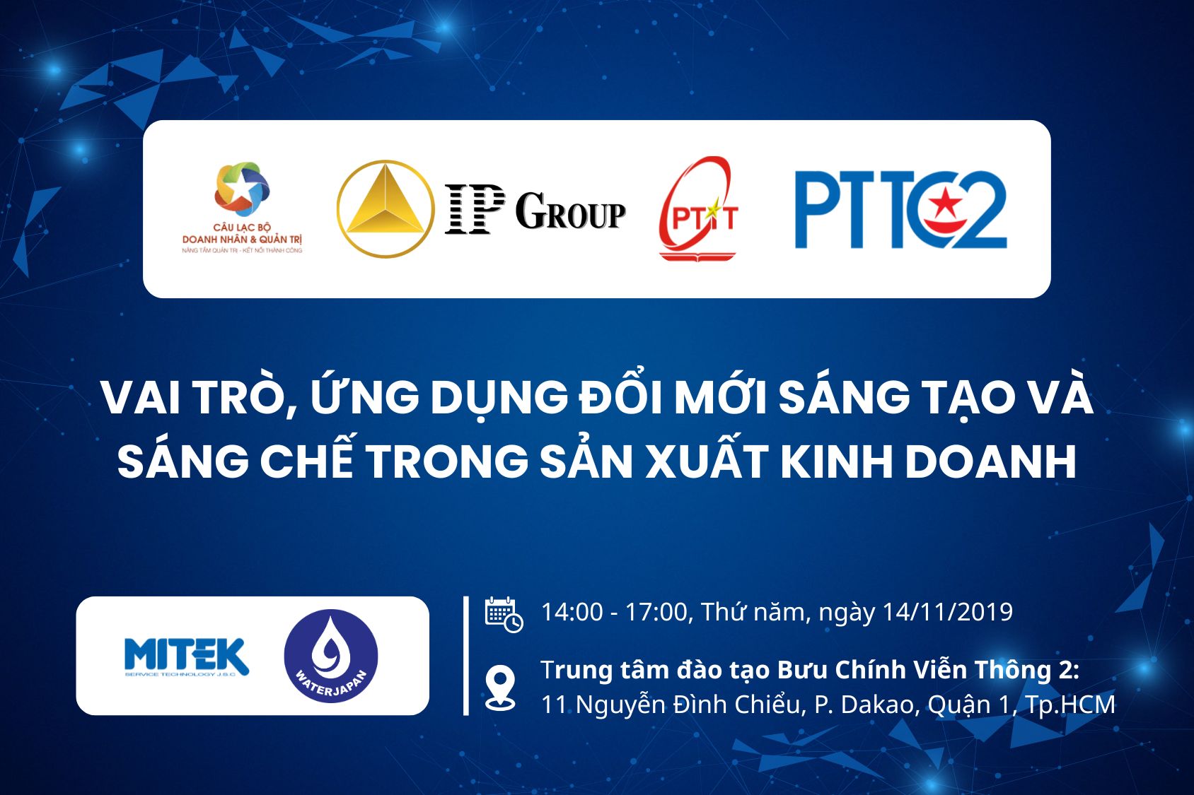 Không khó nếu chúng ta quyết tâm và có phương pháp. Khó nếu chúng ta không tham dự buổi hội thảo “Đổi mới sáng tạo và Sáng chế trong sản xuất kinh doanh” do CLB Doanh nhân & Quản trị, Trung tâm Tăng tốc khởi nghiệp – Học viện Công nghệ Bưu chính Viễn thông và IP Group tổ chức.
