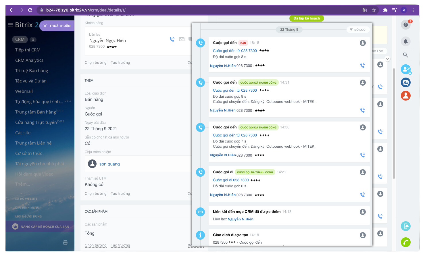 2. Pop-up thông tin của Khách hàng được hiển thị trên Bitrix24