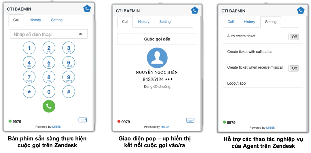 Các tương tác của Agent trên hệ thống Call Center khi tích hợp Zendesk