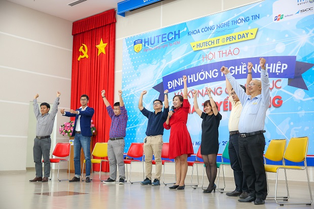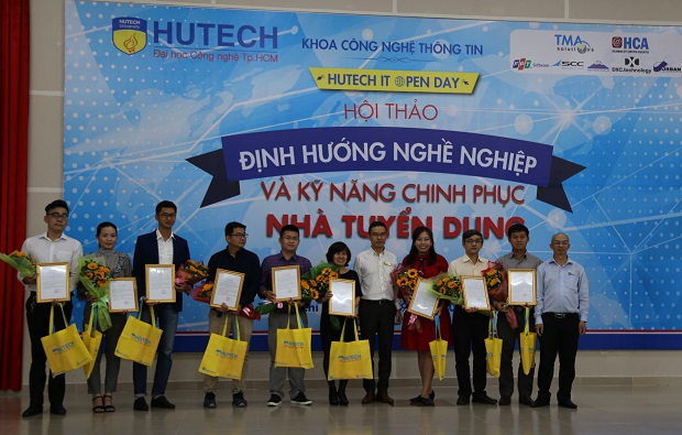 Bên cạnh sự có mặt của TS. Nguyễn Xuân Hoàng Việt – Phó Hiệu trưởng Nhà trường, ThS. Dương Thành Phết – Phó trưởng khoa CNTT, TS. Vũ Thanh Hiền – Phó trưởng khoa CNTT, TS. Tô Hoài Thắng – Phó Giám đốc Trung tâm hợp tác doanh nghiệp HUTECH, hội thảo còn có sự xuất hiện của chị Văn Thị Bích Ty – Trưởng ban truyền thông và Cộng đồng Hội tin học TP. HCM, cùng các chuyên gia đến từ doanh nghiệp hàng đầu trong lĩnh vực Công nghệ thông tin gồm: Anh Bùi Văn Cường Giám đốc quản lý dự án cấp cao Cty TMA Solution, Chị Lương Thị Hồng Thúy – Giám đốc Cty Urban Việt Nam, Chị Nguyễn Thị Vong – Trưởng phòng đào tạo, Giám đốc học viện Fresher Academy FPT Software HCM, Anh Trầ Anh Quân – Talent Acquisition Manager DXC Asia, Quản lý tuyển dụng DXC Việt Nam, Anh Trịnh Thanh Sử – Technical Service Manager Cty SCC Việt Nam, Anh Đinh Bảo Tuyên – Phó Giám đốc khối quản lý phát triển phần mềm Cty Fujjinet JSC; Anh Trịnh Minh Thành – IT Manager Cty Urban Việt Nam. Đây cũng là những diễn giả chia sẻ cùng các bạn sinh viên trong hội thảo.