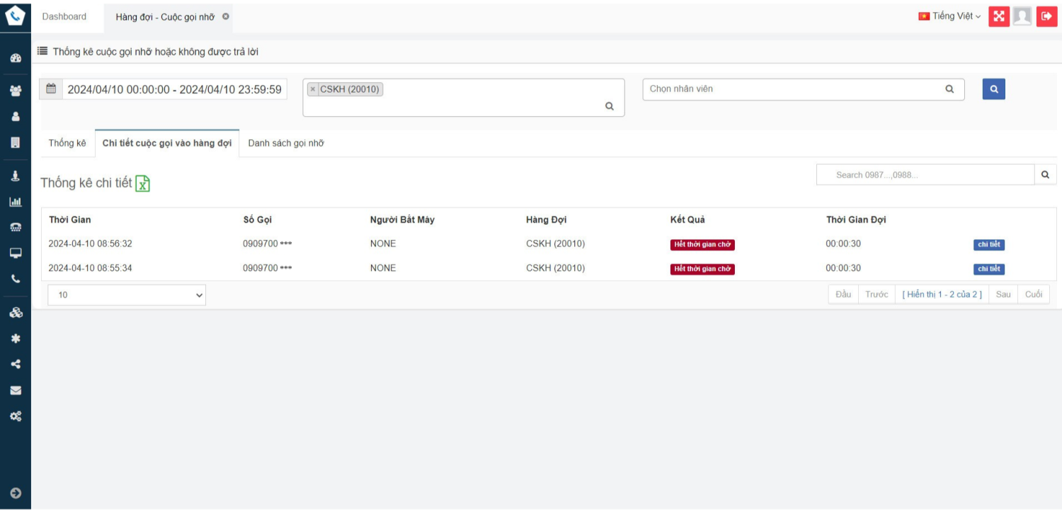 Trong Email thông báo cuộc gọi nhỡ sẽ bao gồm các thông tin như: thời gian khách hàng gọi đến, số điện thoại của khách hàng và hàng đợi tiếp nhận bị nhỡ, thời gian chờ