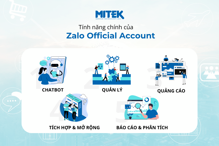 Với việc tận dụng tối đa các tính năng đa dạng và hiện đại, Zalo OA giúp doanh nghiệp nâng cao hiệu quả kinh doanh, tối ưu hóa chiến lược tiếp thị, và cải thiện trải nghiệm khách hàng. Sau đây là một số tính năng đáng chú ý của Zalo OA mà Doanh nghiệp không nên bỏ qua: