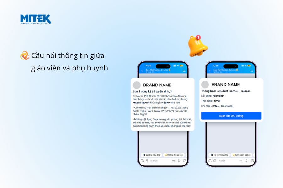 Thông báo ZBS Template Message đóng vai trò như một kênh giao tiếp trực tiếp giữa giáo viên và phụ huynh.