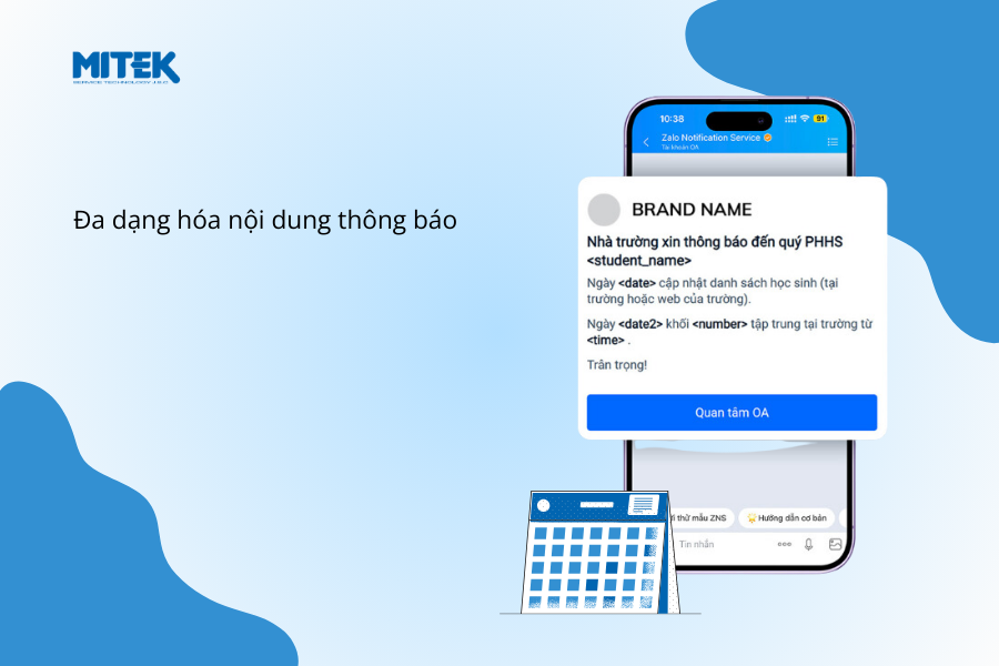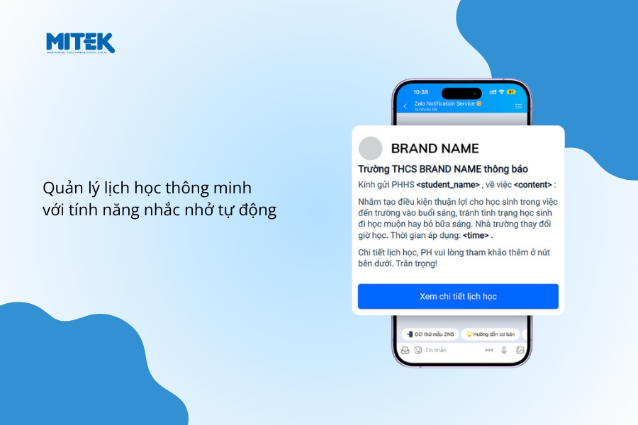 Với tính năng nhắc nhở lịch học và sự kiện quan trọng, ZBS Template Message giúp học sinh và phụ huynh luôn cập nhật với các hoạt động sắp tới.