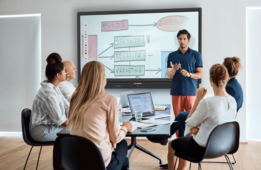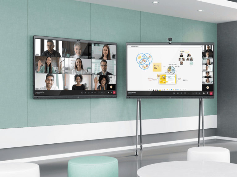 Màn hình cảm ứng LED 86 inch và giao diện hoạt động phù hợp với Teams mang đến bản trình bày hình ảnh 4K phong phú và điều hướng menu dễ dàng.