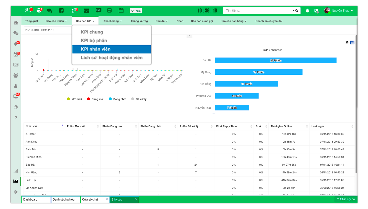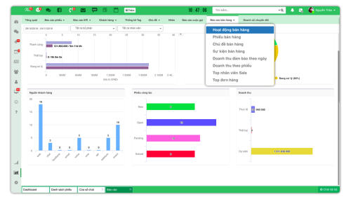 Phân tích và Báo cáo - Tính năng Thống kê Báo cáo KPIs, Sales, Marketing, SLA,...