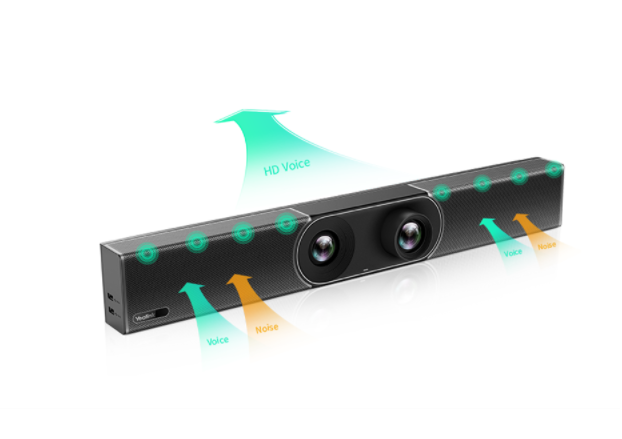 MeetingBar A30 tích hợp với 8 mảng micrô MEMS và thuật toán chống ồn Yealink, mang đến trải nghiệm âm thanh tuyệt vời cho các phòng trung bình ngay cả ở chế độ song công và đảm bảo rằng tất cả mọi người đều có thể nghe thấy được.