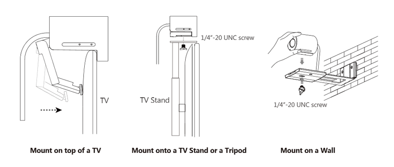 Với một kẹp có thể thu vào, bạn có thể gắn UVC30 ở bất cứ nơi nào mà nó có thể hoạt động tốt nhất hay bất cứ nơi nào mà bạn muốn. Cho dù bạn gắn Camera đó trên đỉnh màn hình hay dưới màn hình, Gắn trên tường hay bất kì vị trí nào cũng đều được cả.