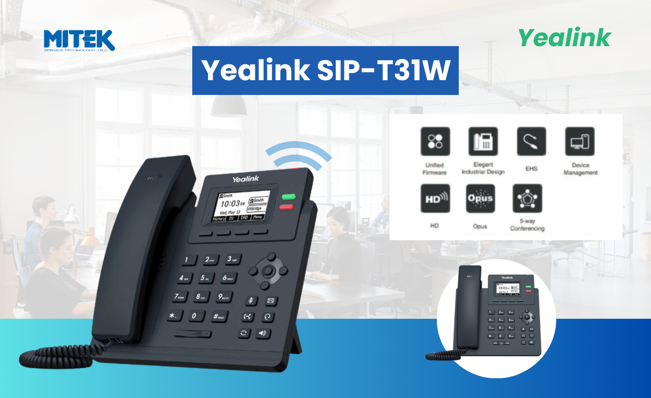 Yealink SIP-T31W được tích hợp Wi-Fi 2.4G/5G, cho phép bạn sử dụng không dây. Mẫu điện thoại này cũng hỗ trợ hai tài khoản VoIP và năm cuộc gọi hội nghị đáp ứng tốt mọi nhu cầu liên lạc của bạn.