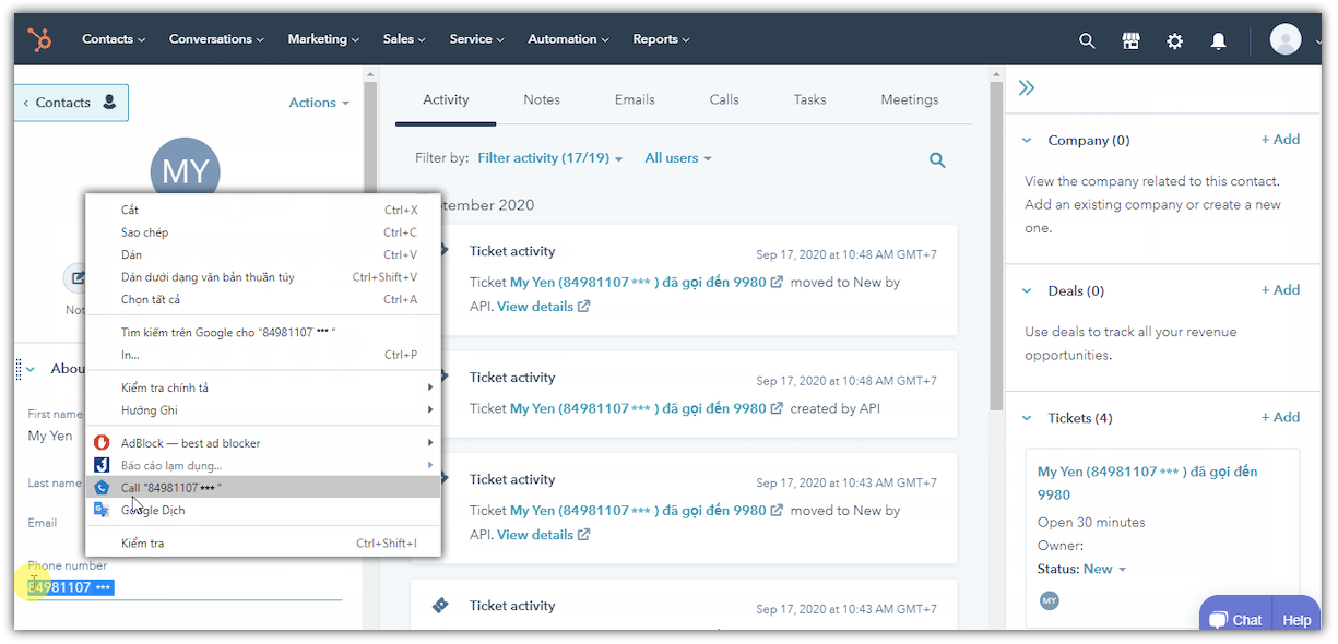 3. Thao tác Click to Call vào số điện thoại trên hệ thống HubSpot CRM: