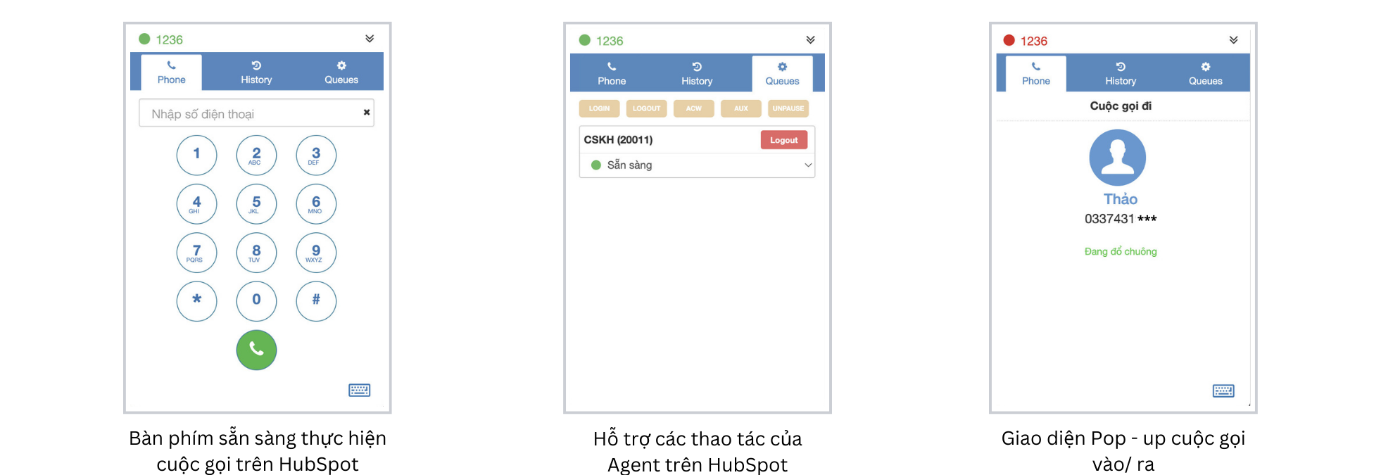 Các giao diện CTI của tổng đài Call Center tích hợp trên HubSpot CRM