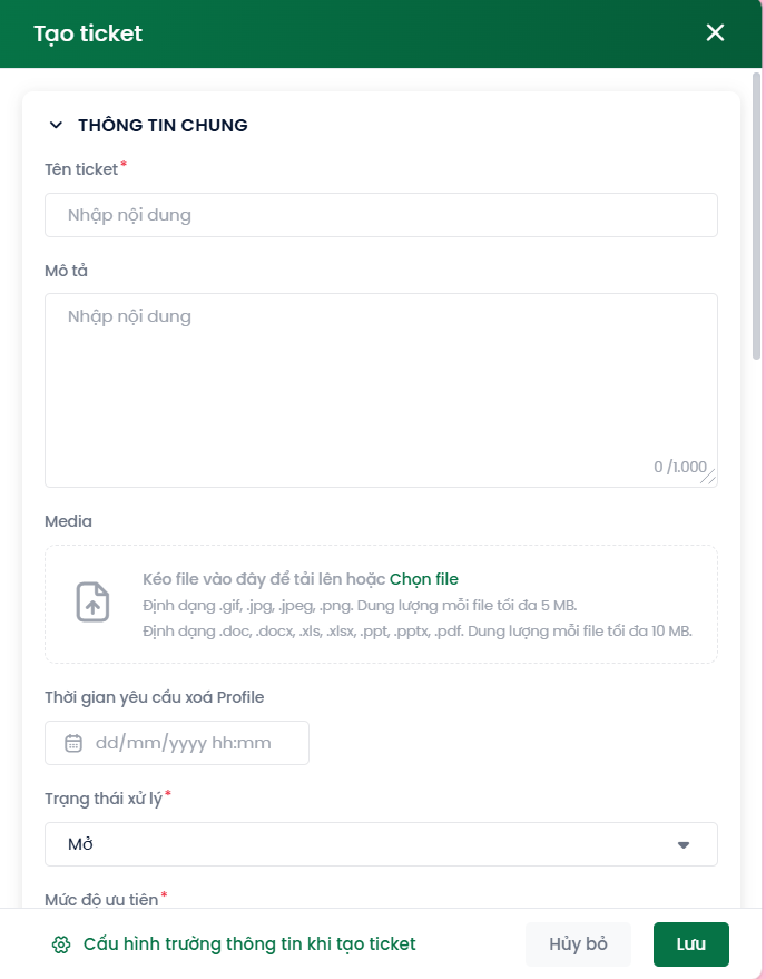 5. Tạo ticket trên cửa sổ Popup:
