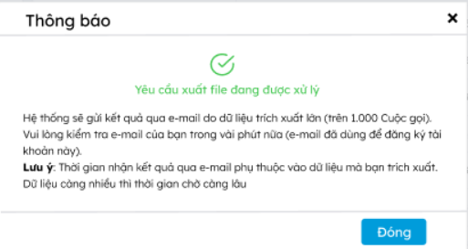 Với những báo cáo có trên 1000 cuộc gọi thì sẽ được gửi qua email của tài khoản Mobio dùng để xuất báo cáo.