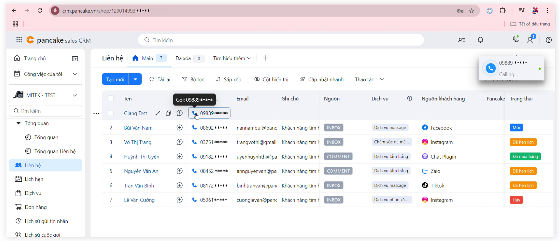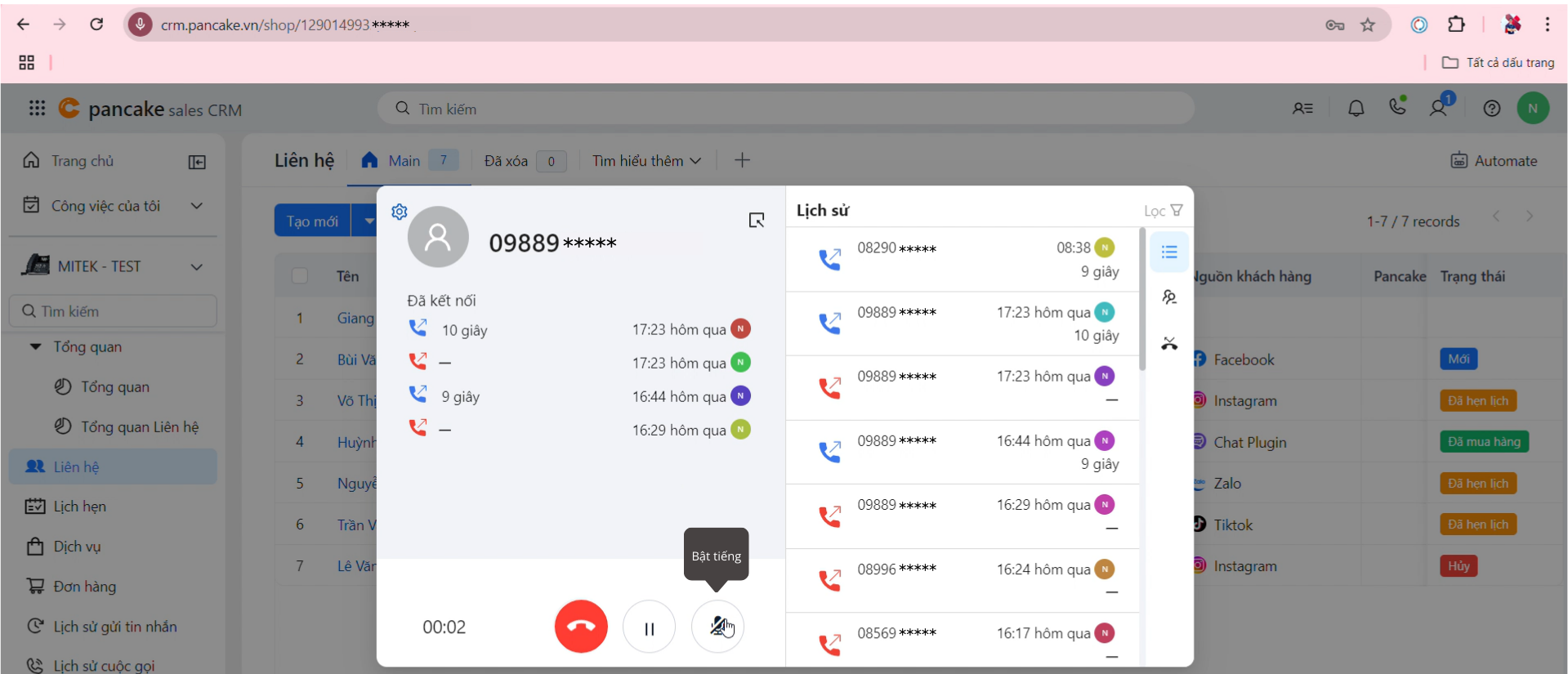 3. Thao tác Click to Call trực tiếp ngay trên hệ thống Pancake CRM: