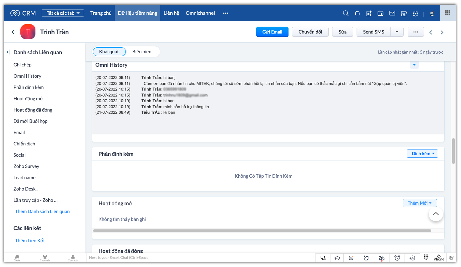 3. Dễ dàng tiếp nhận, xử lý và quản lý lịch sử tương tác các kênh Facebook, Zalo OA trên Zoho CRM:
