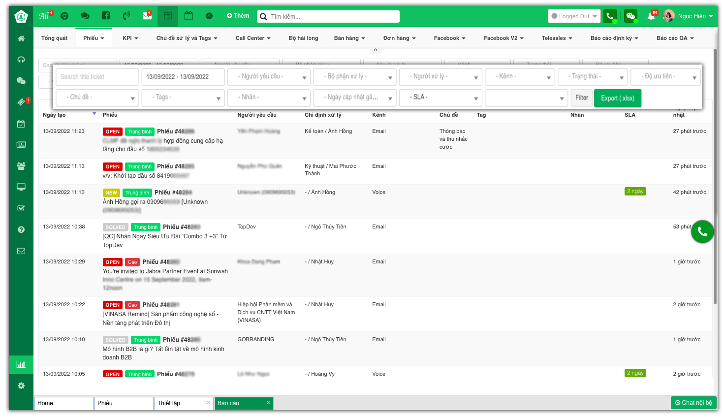 Mở ticket tiếp nhận cuộc gọi từ Khách hàng (bao gồm cả cuộc gọi gặp Agent và cuộc gọi nhỡ)