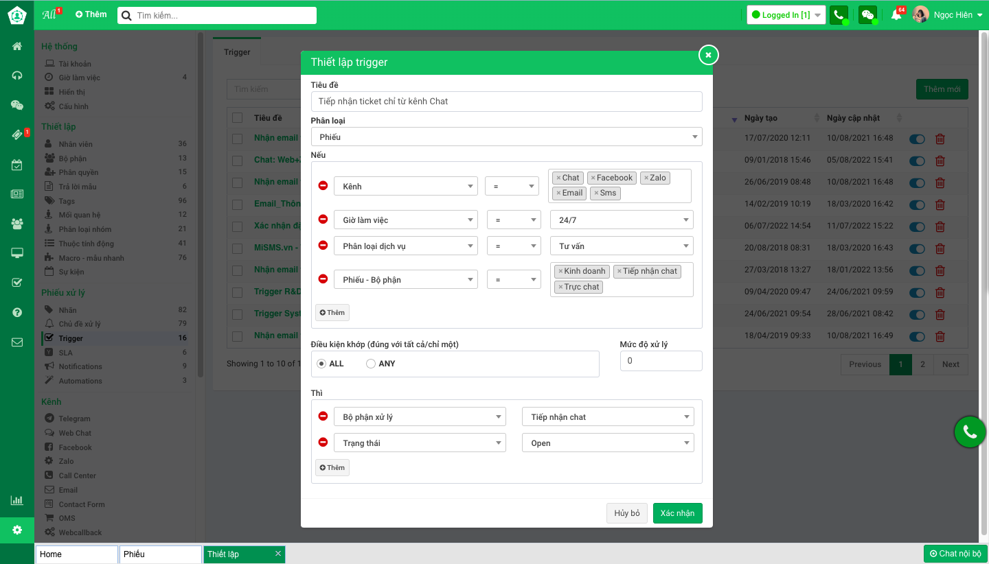 - Thiết lập các tiêu chí riêng cho chức năng phân bổ Ticket dựa theo các chủ đề cài đặt trên Ticket như kênh, mối quan hệ, mốc sự kiện….
