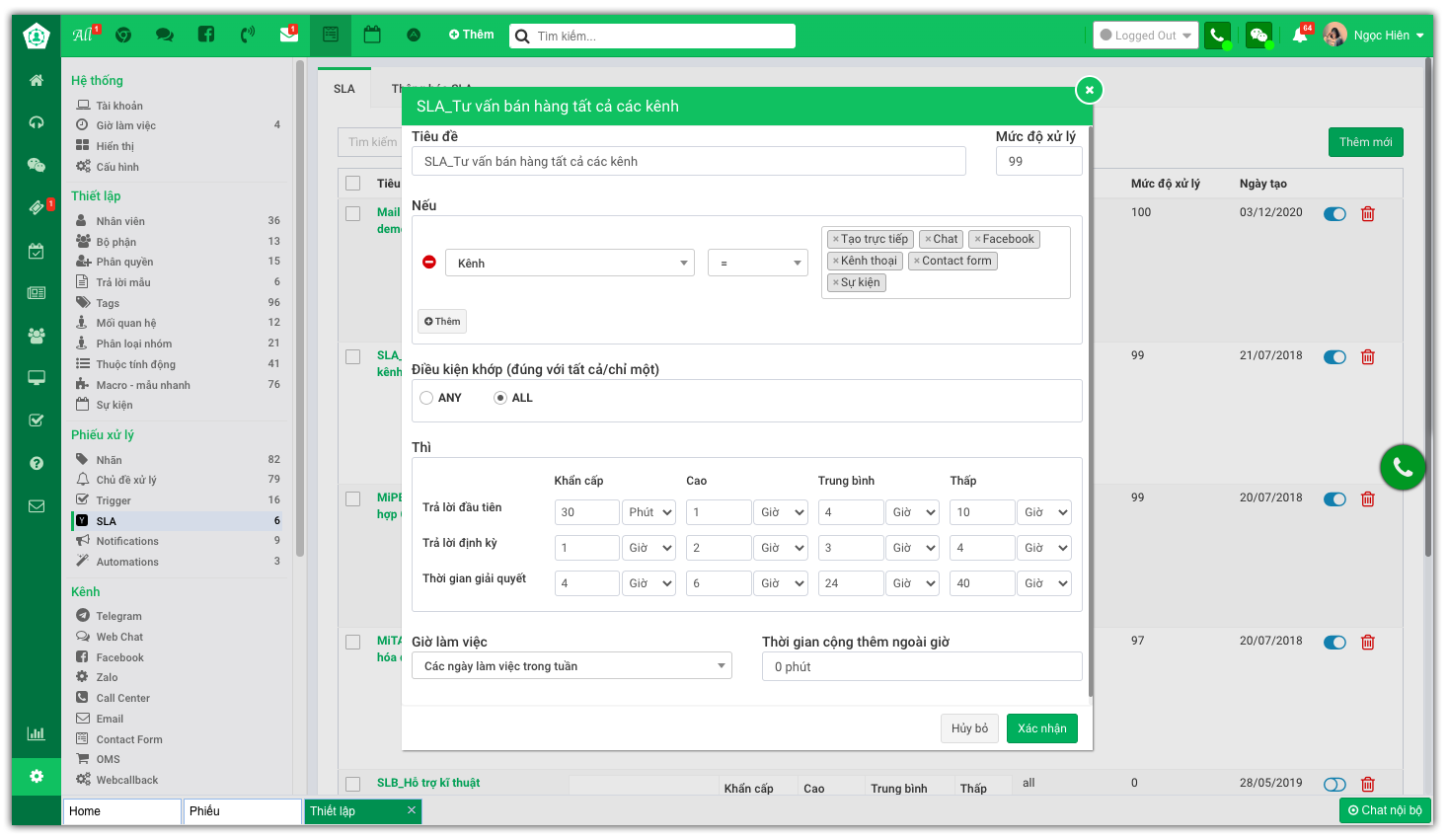 Thiết lập SLA cho Ticket giúp gia tăng sự hài lòng của Khách hàng