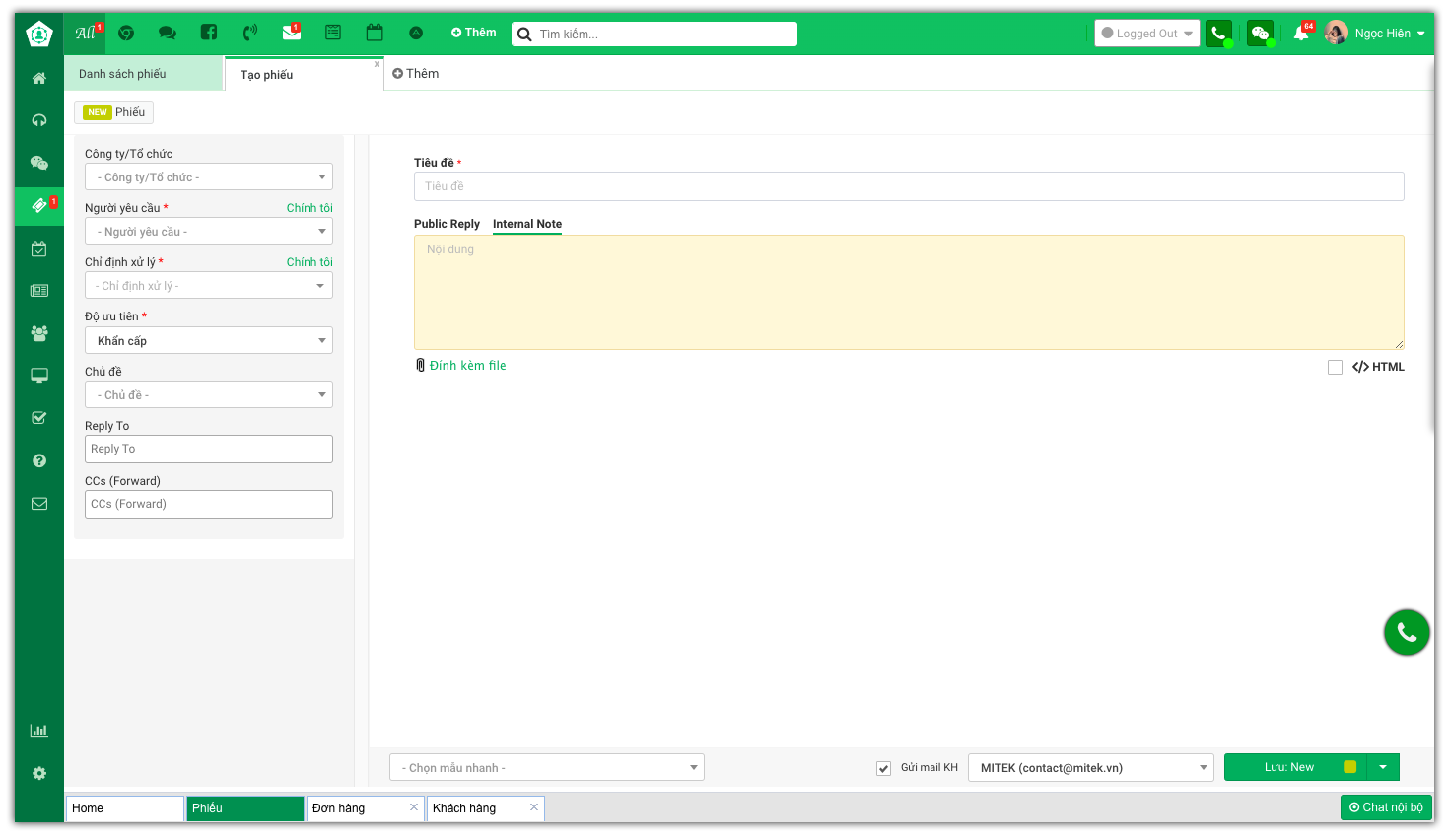 Tạo phiếu khi tiếp nhận cuộc gọi