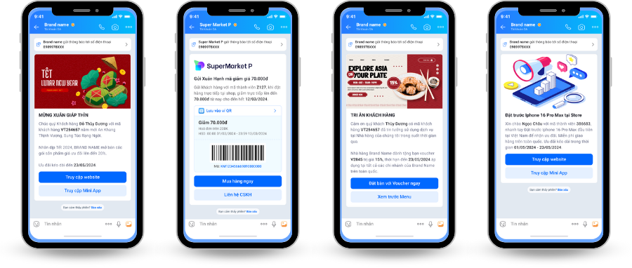 Các dạng gửi tin nhắn phổ biến khi dùng giải pháp Zalo ZNS