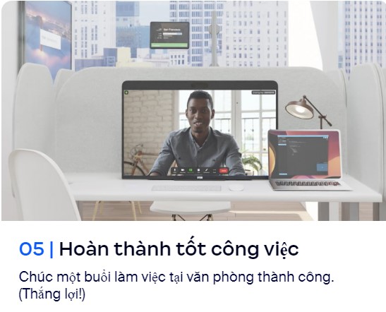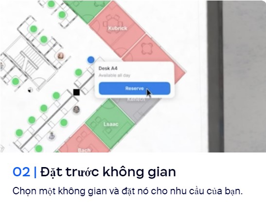 Đặt trước không gian làm việc là một giải pháp sáng tạo cho phép các nhóm của bạn linh hoạt đặt trước không gian làm việc trước hoặc khi họ đến văn phòng. Đây có thể là một bàn làm việc mở hoặc một không gian làm việc được cá nhân hóa với thiết bị Zoom. Giải pháp dễ dàng sử dụng và quản lý này sẽ hiện đại hóa không gian làm việc của bạn.