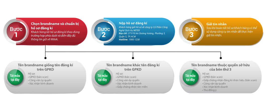 Tên thương hiệu chính là tên được hiển thị trên điện thoại của người nhận. Ví dụ: Mobifone, Viettel, MITEK,....