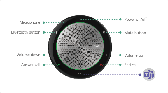Touch Buttons: ower,Bluetooth, Call answer, Call hangup, Volume up, Volume down, Mute, Voice assistant/Teams