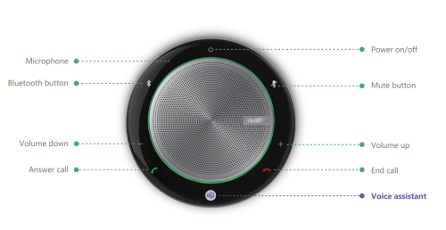 ![]() | Chất lượng âm thanh HD Phạm vi thu âm giọng nói là 2m và 360 độ Kết nối không dây Bluetooth với các thiết bị di động, máy tính Thời lượng pin cho phép đàm thoại liên tục 12 tiếng. Tích các nút hợp tuỳ chỉnh trên loa Tích hợp tốt với phần mềm microsoft team Tích hợp công nghệ chống ồn. Thời lượng pin 2450mAh Thời gian sạc là 3 tiếng Thời gian sạc: 5 giờ Thời gian đàm thoại: 12 giờ Thời gian chờ: 450 ngày Chiều dài cáp USB: 0,9 mét |