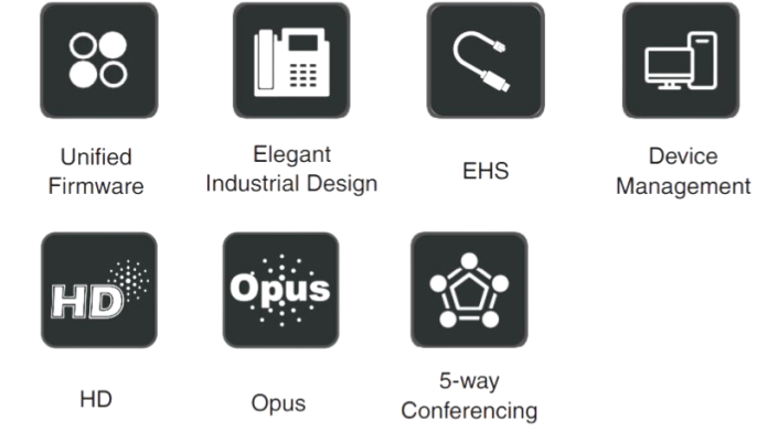 Ngoài ra, SIP T30 hỗ trợ cho một tài khoản VOIP và thực hiện cuộc gọi 5 chiều, sản phẩm hỗ trợ kết nối với tai nghe không dây thông qua EHS35, được bổ sung chân đế đa góc có thể điều chỉnh linh động tuỳ chỉnh.