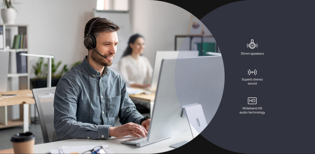 Được thiết kế để mang lại sự thoải mái và nhẹ nhàng, tai nghe đi kèm với dây đeo đầu bằng da và đệm tai thân thiện với da, khiến tai nghe trở nên lý tưởng khi đeo trong thời gian dài. Hoàn toàn phù hợp cho cả môi trường văn phòng và làm việc từ xa, UH35 hỗ trợ duy trì sự tập trung và tăng năng suất. Tai nghe có thể hoạt động trơn tru với các nền tảng UC chính và tích hợp nguyên bản với điện thoại IP Yealink.